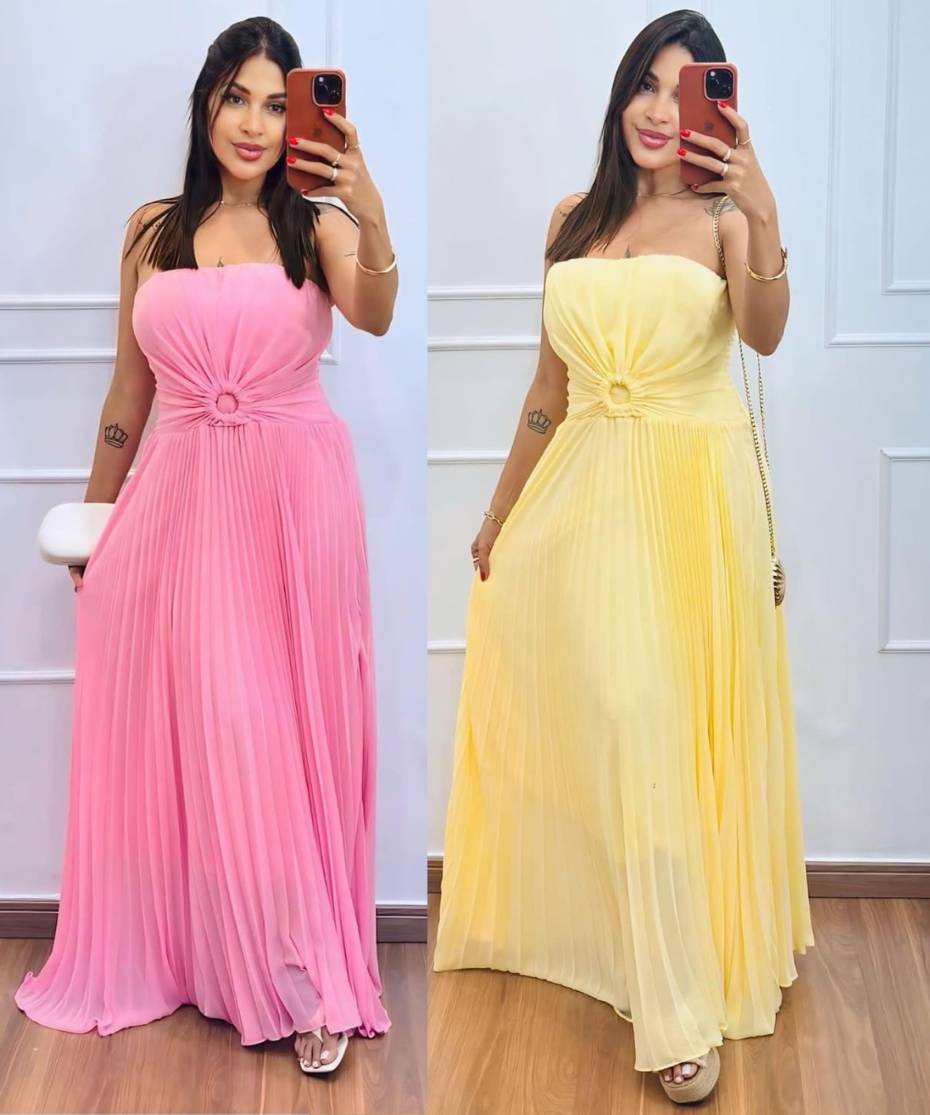 Se você procura um look marcante e versátil, o Vestido Longo Plissado é a escolha perfeita para compor produções elegantes e modernas em qualquer ocasião.