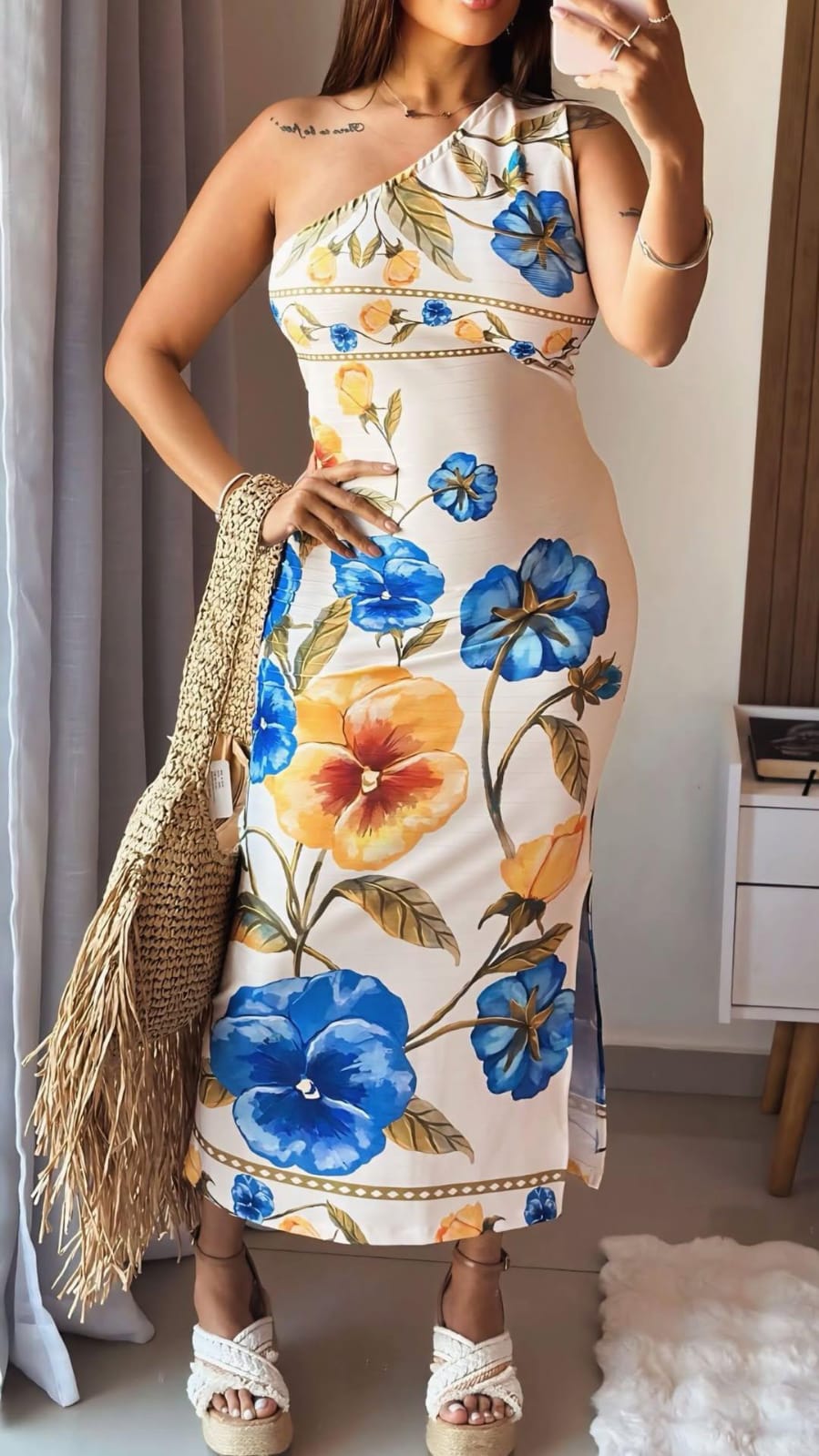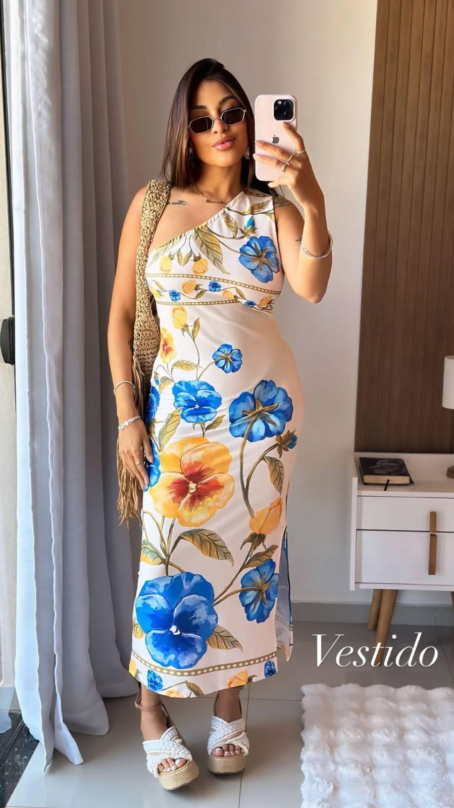 O Vestido Flora di Capri é a escolha perfeita para quem quer unir elegância e leveza em um só look. Com modelagem midi que valoriza a silhueta e estampa floral vibrante em tons de azul e amarelo, ele transmite sofisticação e frescor. O detalhe de um ombro só adiciona um toque moderno e feminino, ideal para eventos diurnos, passeios ou ocasiões especiais. Seu tecido macio e o caimento impecável garantem conforto e estilo em qualquer momento.